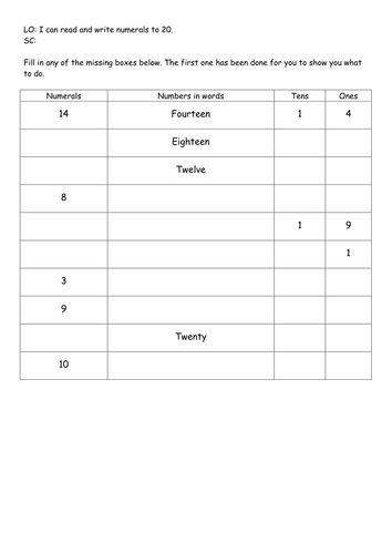 KS1: Year 1 - Read and Write Numbers to 20 worksheets ...