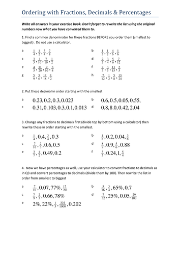 Ordering fractions, decimals & percentages by Tristanjones ...