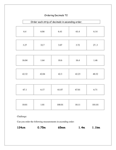 Ordering decimal numbers by cleggy1611 - Teaching ...