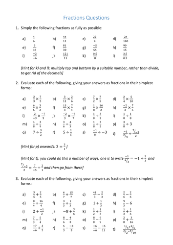 Printables of Fractions Revision Worksheet Tes ...