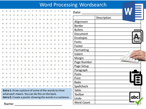 Word Processing Wordsearch ICT Computing Starter Settler ...