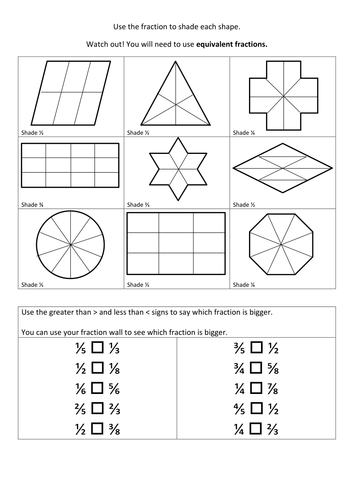 How many ways can you find to colour in a half? Learn Shading shapes of fractions with these fraction worksheets. This worksheet can be used to learn the important concepts, related to the simplification of fractions such as how to reduce the proper fraction, improper fraction and mixed numbers to the lowest term.