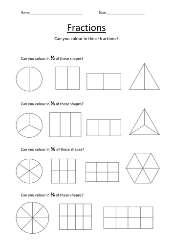 Worksheet Shading Fractions Of Shapes. The denominator tells us how many equal parts to divide the shape into. Learn how to shade fractions of shapes with our video lesson and shading fractions worksheets.