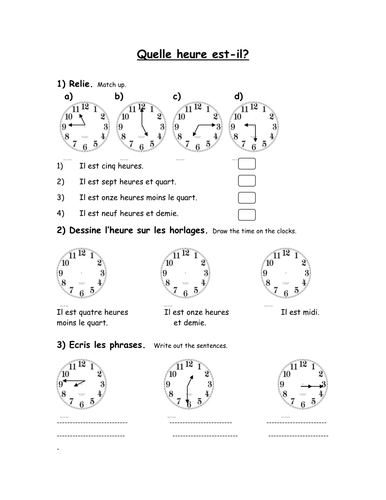 Worksheet Time In French. Learn parts of the body, school supplies and other vocabulary works with our French worksheets. It's different than we use in English, so here are the basics: The French word for "time," as in, "What time is it?" is l'heure, not le temps.