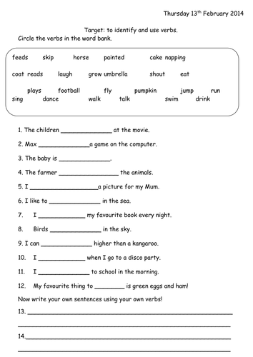 Verbs Worksheet Year 1 by joop09 - Teaching Resources - TES