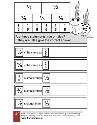 In these worksheets the child has to find the equivalent fraction to the given fraction. We can get equivalent fractions by multiplying the numerator and denominator by the same number. Finding tenths of numbers, equivalence, adding and subtracting fractions.