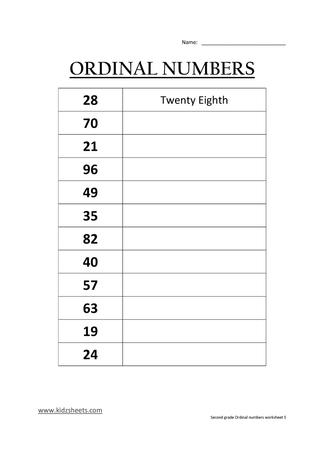 Kidz Worksheets: Second Grade Ordinal Numbers Worksheet5