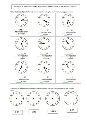 Grade 3 Telling Time Worksheet : Draw the Clock - 1 minute ...