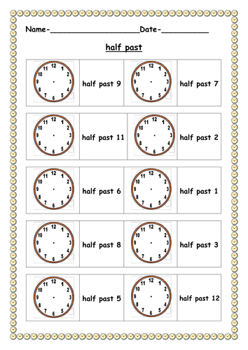 Half past worksheet | Teaching Resources